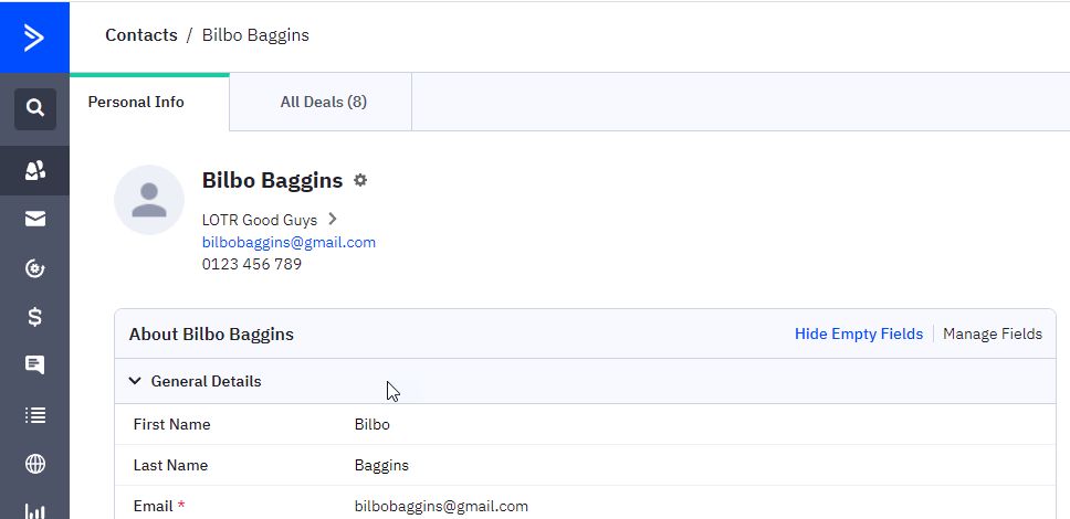 The ActiveCampaign Ids for the contact and company/account are shown below the address details. This is how you know the contact is linked to ActiveCampaign, rather than being manually typed in.