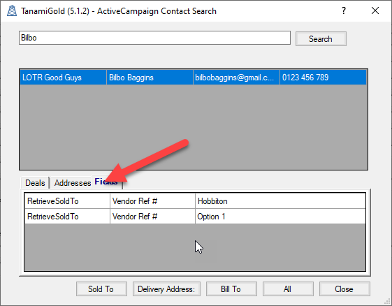 The fields tab shows the fields from ActiveCampaign that will be mapped to QuoteWerks when the contact details are added to the quote. These are defined in the Data Link Mapping setup.