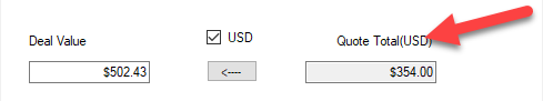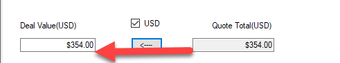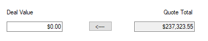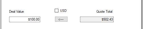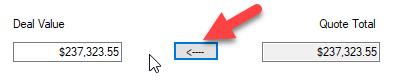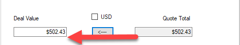 You can set the deal value by entering a value in the text box, or by copying the total value of the quote by pressing the “<---” button.