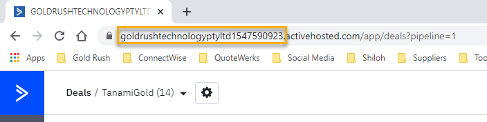 You also need to supply the Company Domain in the case of Pipedrive, or the Account in the case of ActiveCampaign. In both cases this is found when you logon to the software, and it is the part of the URL unique for your business.